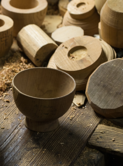 We make designs such as the shape and pattern for each customer by consulting their preference. There are expert craftsmen for each Wajima-nuri’s process as follows, craftsmen of kiji (wooden base), craftsmen of shitaji (base coating), craftsmen of nakanuri (internal coating), craftsmen of uwanuri (top coating), craftsmen of maki-e (painting the pattern), craftsmen of chin-kinn (putting on the gold into the pattern), craftsmen of togimono (sharpening), craftsmen of roiro (glazing).