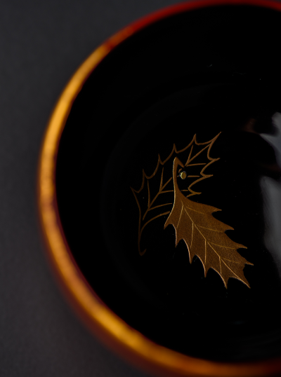 “HATOH” are produced through the process of painting urushi many times, putting the gold leaf, and finishing with coating syuai-urushi which was uniquely dispensed by ourselves Ichimatsu. The lacquerware produced by “All procedures are managed by one workshop” changes their color together with the year used. Also, the color and the unique textures of gold leaf combine to make a mysterious design. We would like you to enjoy the changing flavor by identifying one’s own long life with the changing of the Wajima-nuri’s color.